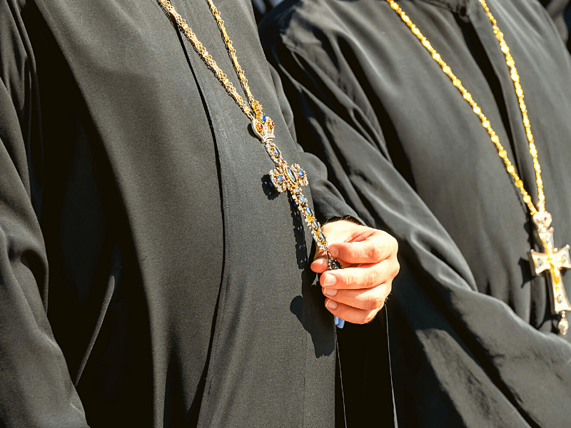 Οι Ιερείς, με την σεμνή τους εμφάνιση, τα μακριά γένεια και μαλλιά, που σημαίνουν την αφιέρωσή τους στον Κύριο, με τα μαύρα ράσα που σημαίνουν πένθος για τα Πάθη του Κυρίου, πένθος για τις αμαρτίες τις δικές τους αλλά και τις αμαρτίες του κόσμου, και χωρίς να θέλουν, διδάσκουν και συμμορφώνουν τους γύρω τους.