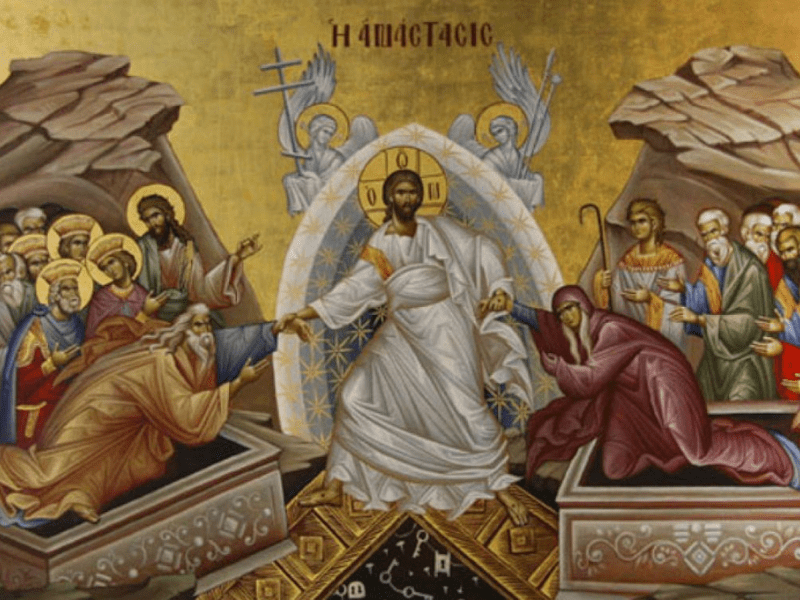 Ἥλιος τῆς δικαιοσύνης ὁ τριήμερος ἀνέτειλε σήμερα κι᾽ ὁλόκληρη ἐφώτισε τήν πλάση. Ὁ τριήμερος καί προαιώνιος Χριστός, τό τσαμπί τοῦ σταφυλιοῦ, βλάστησε καί τόν κόσμο πλημμύρισε ἀπό χαρά. Τήν ἀβασίλευτην αὐγή ἄς δοῦμε. Πρίν ἔρθη ἡ αὐγή, ἄς τή δοῦμε σήμερα καί ἀπ᾽ τή φωτοπλημμύρα ἄς γεμίσουμε ἀπό χαρά. Τίς πόρτες τοῦ Ἅδη ἀνοίγει ὁΣυνέχεια ανάγνωσης «Αὐτή εἶναι ἡμέρα, πού βγῆκε ἀπ᾽ τά χέρια τοῦ Κυρίου»